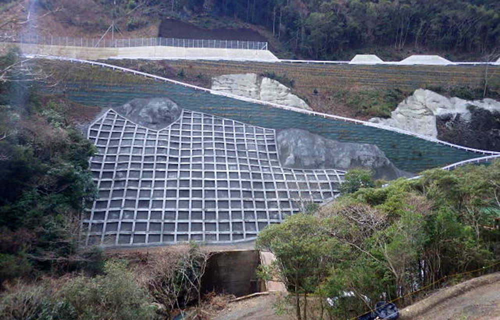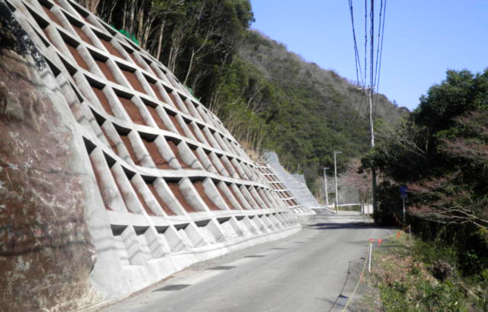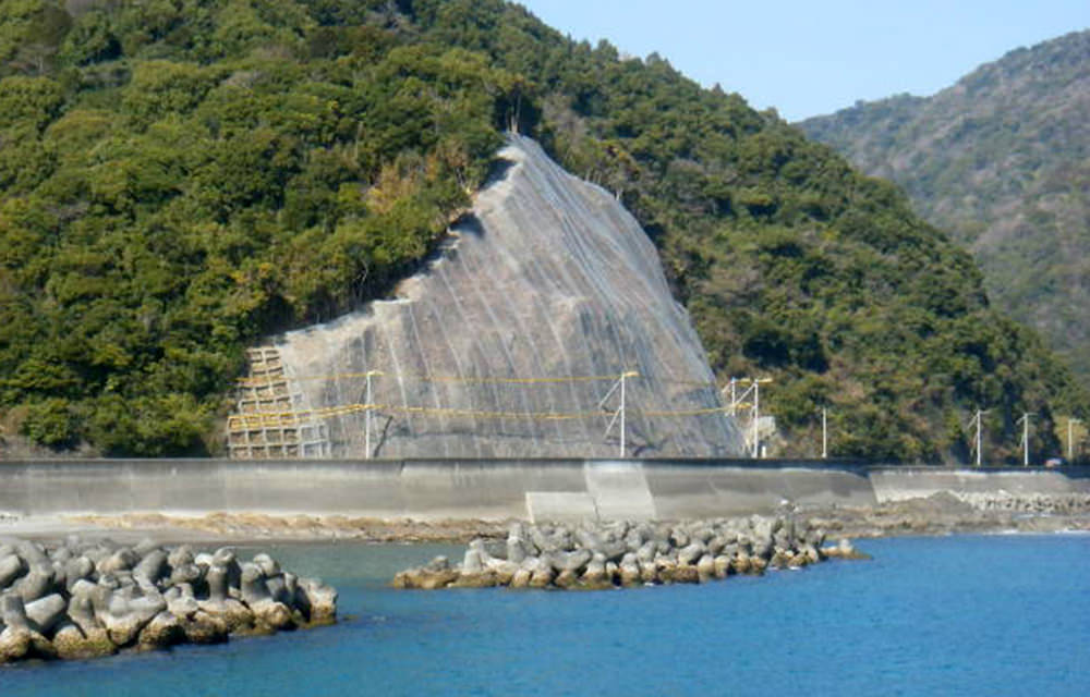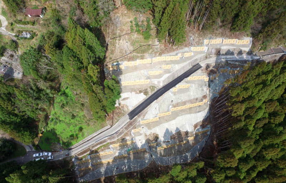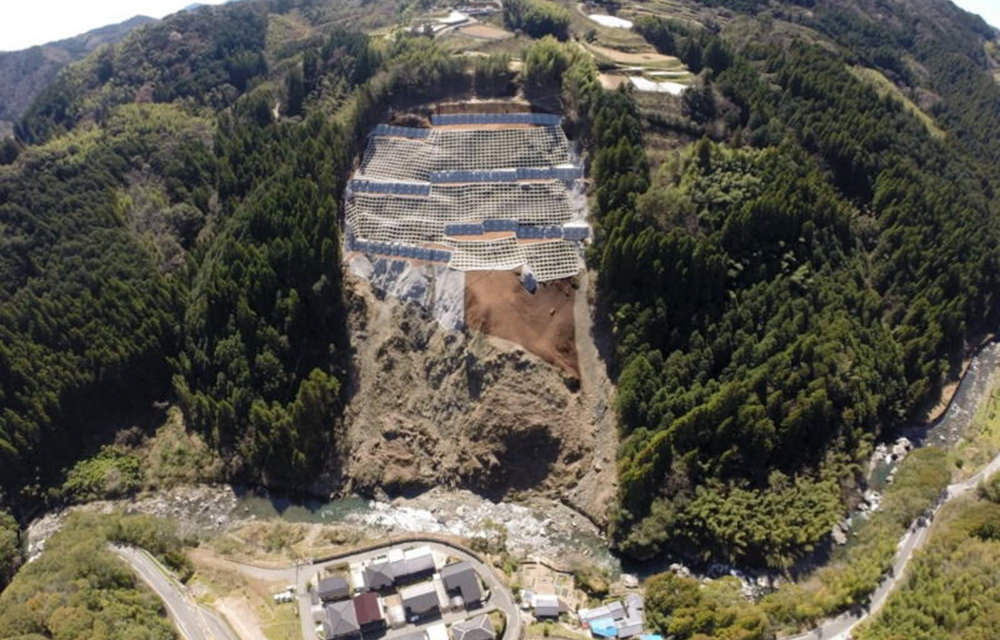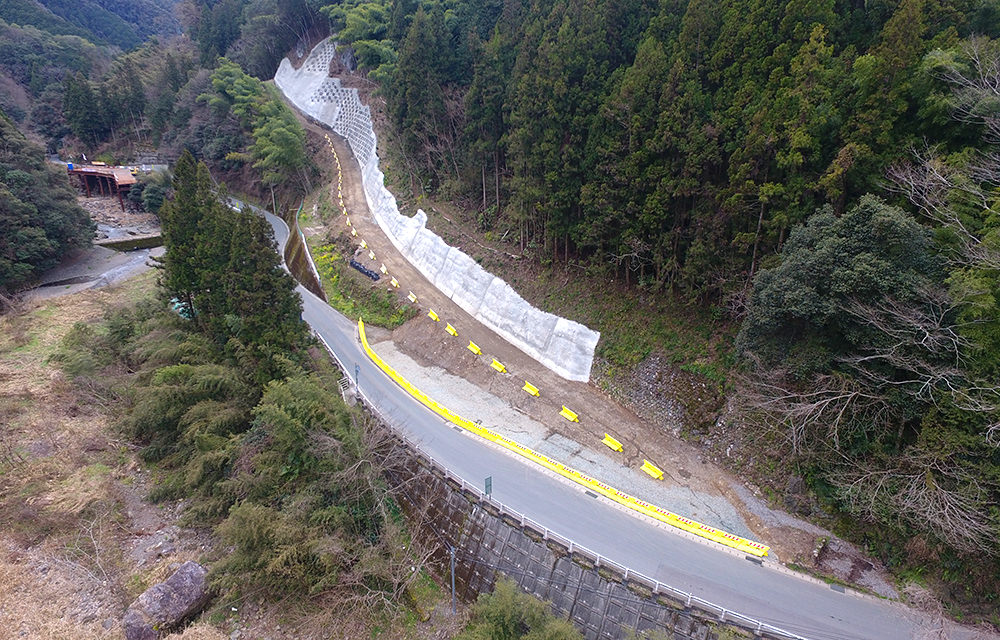 日浦下地区災害関連緊急地すべり対策工事受注者名:ムクタ・谷渕特定建設工事共同体